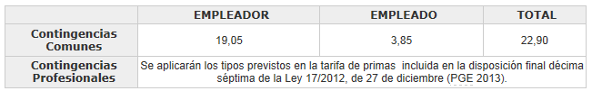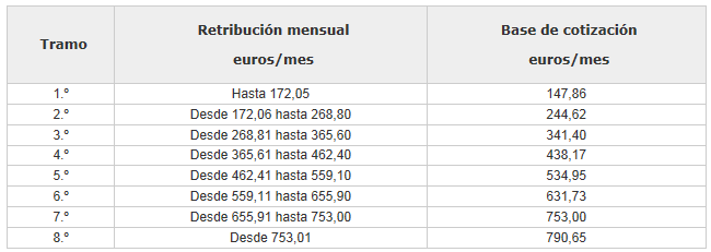 Los tipos de cotización se ajustarán al siguiente cuadro: